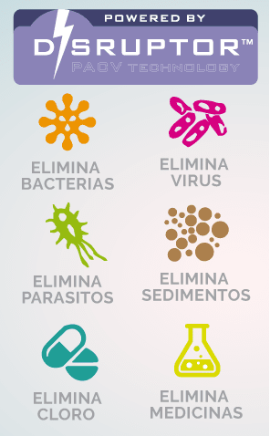Pruebas independientes han demostrado que Disruptor ™ PACV elimina el virus MS2 (bacteriófago) más del 99,99%. También puede eliminar una variedad de bacterias superior al 99,99%, que incluyen: E. coli, Pseudomonas y Legionella, Cryptosporidium y Giardia. Se ha demostrado que Disruptor ™ PACV elimina ciertos tipos de metales coloidales, incluidos el plomo y el cobre. Compuestos peligrosos de hierro como los PCB (bifenilos policlorados) y trazas de productos farmacéuticos, incluido BPH, un inhibidor hormonal conocido.
